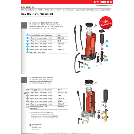 Replacement Gasket Set - For Birchmeier Sprayers FLOX 10, IRIS 15, SENIOR 20