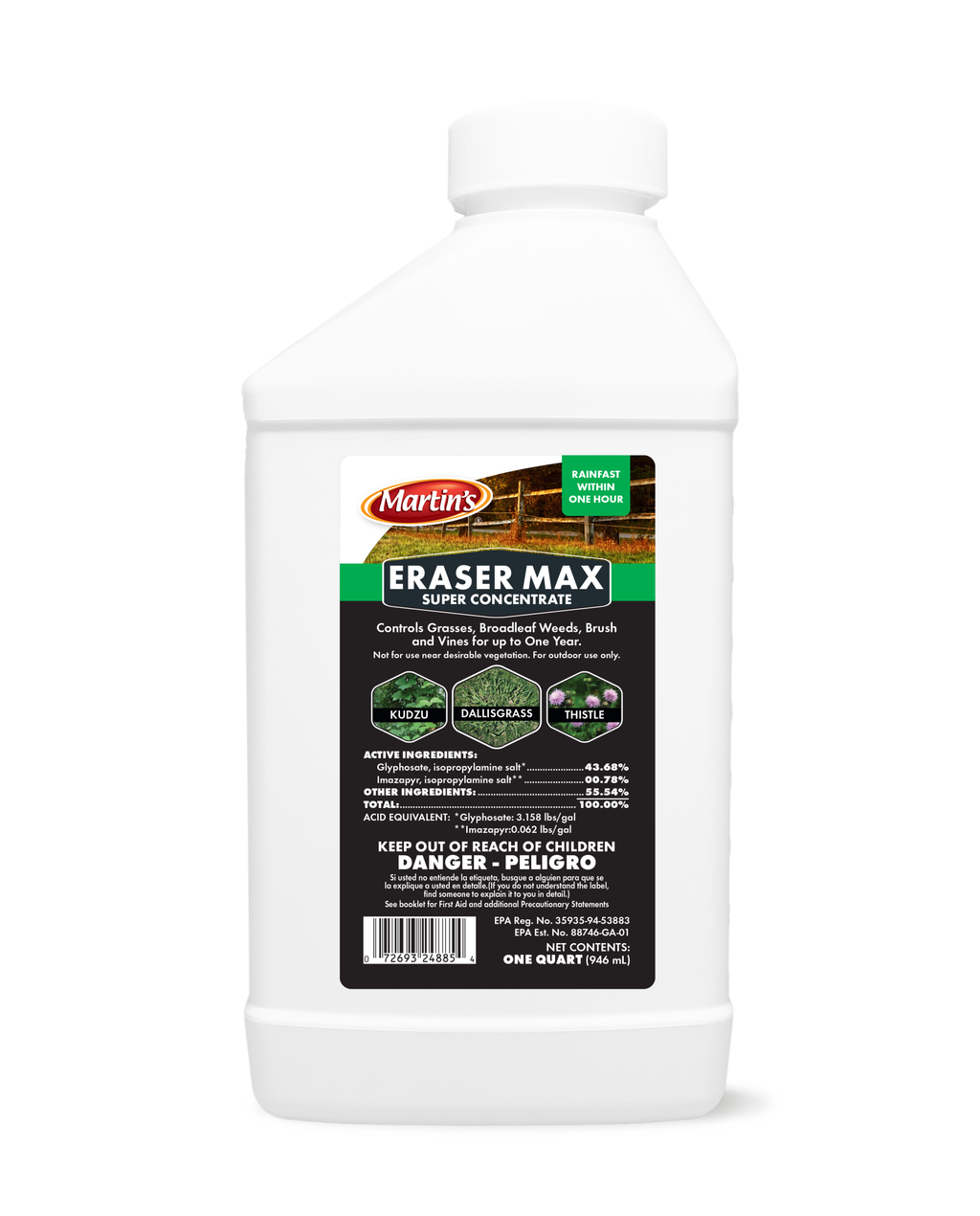 Eraser Max Super Concentrated Herbicide is ideal for controlling grass, broadleaf weeds, brush and vines. It’s fast acting and kills weeds up to one year from just one application. Use as total vegetation control or as a spot treatment for all season long control.