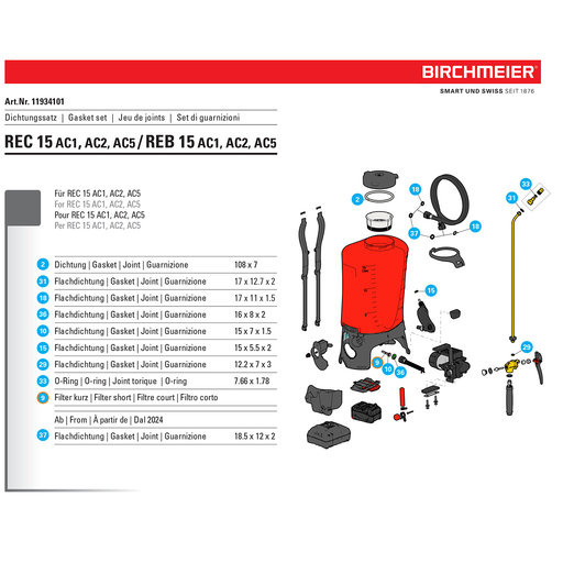 BirchmeierIn stockThis gasket set is a replacement kit designed for the Birchmeier REC 15 and REB 15 battery-powered backpack sprayers. The gaskets are typically m...
