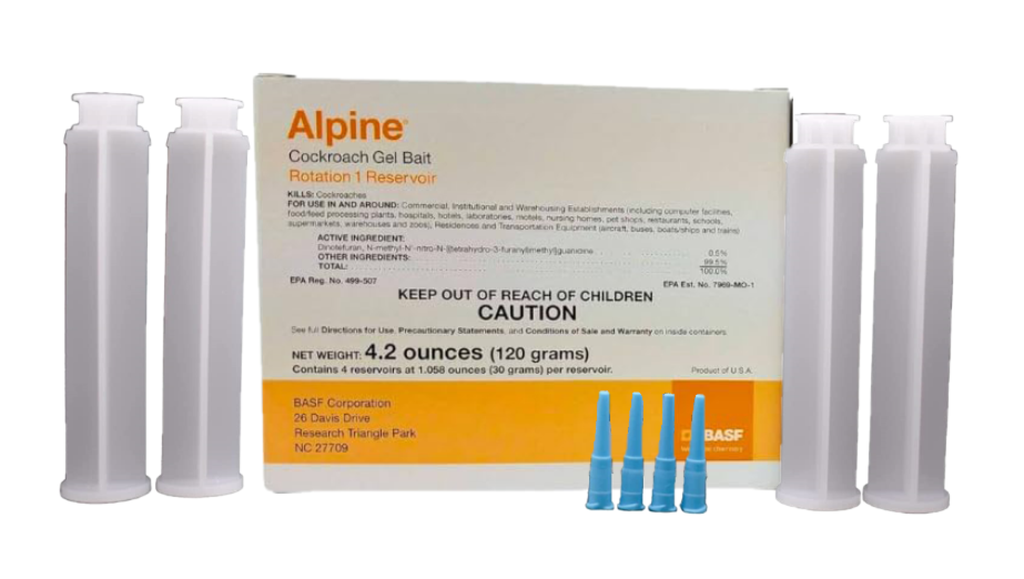 Alpine Cockroach Gel Bait Rotations 1 & 2 contain the same active ingredient, dinotefuran, which has been granted Reduced Risk by the EPA for both public health use and food handling establishments. Its mode of action controls strains that are resistant to the active ingredients found in many sprays and baits.