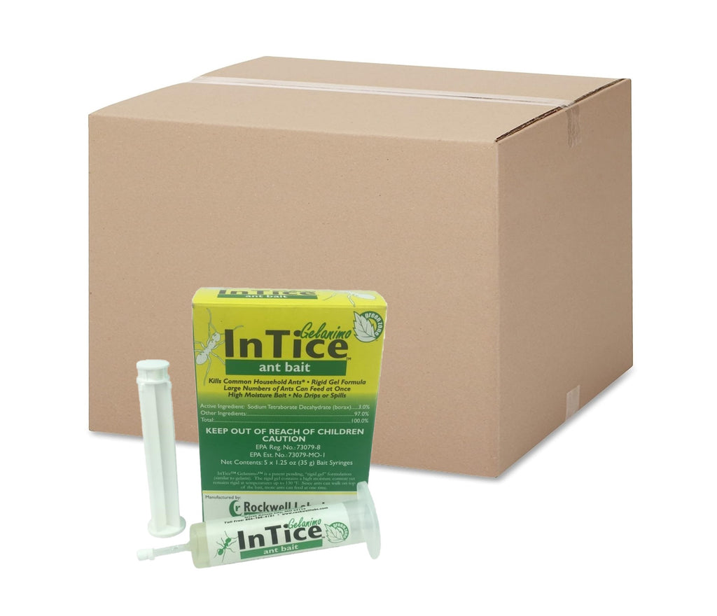 The InTice Gelanimo Ant Bait (5 x 35g syringes) is a patent pending, rigid gel formulation that effectively kills common household ants. The gel contains great moisture content, yet remains stable at temperatures up to 130 degree Fahrenheit. Since ants can walk on top of the bait, more ants can be fed at one time. Gelanimo Ant Bait is great for indoor and outdoor applications, including food areas. One box contains 5 syringes - each containing 35 grams of product and includes 1 plunger.