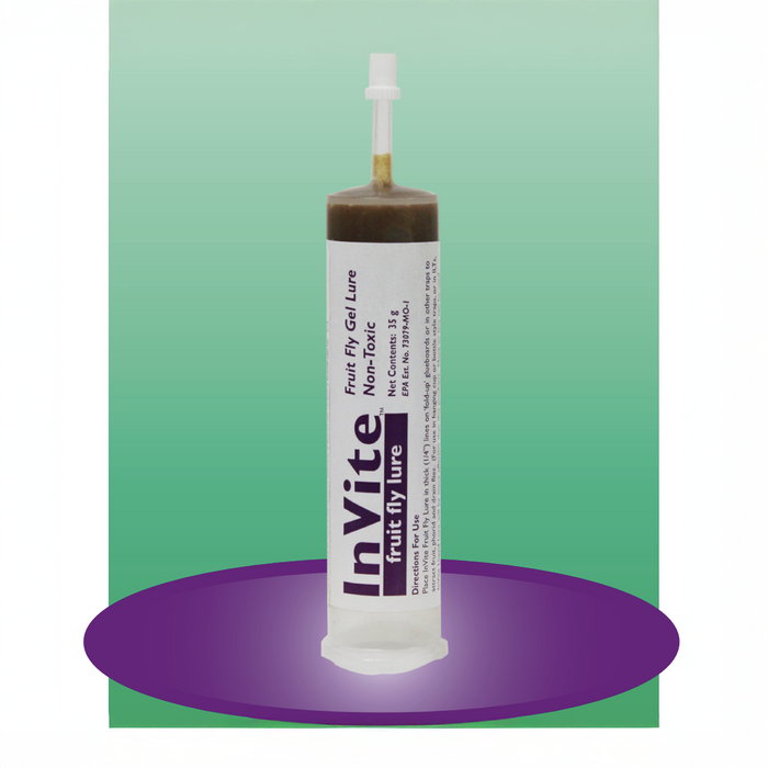 Rockwell Lab's InVite Fruit Fly Gel Lure is a non-toxic formulation that promotes efficient trapping and monitoring of small flies at a minimal cost. This convenient and easy to use gel lure is labeled for Red-Eyed Fruit Flies, Dark-Eyed Fruit Flies, Phorid Flies and Drain Flies. Packaged in a standard 35 gram tube with plunger, InVite Fruit Fly Lure is easy to use and gives more precision during application allowing you to control the amount of product you want to use.
