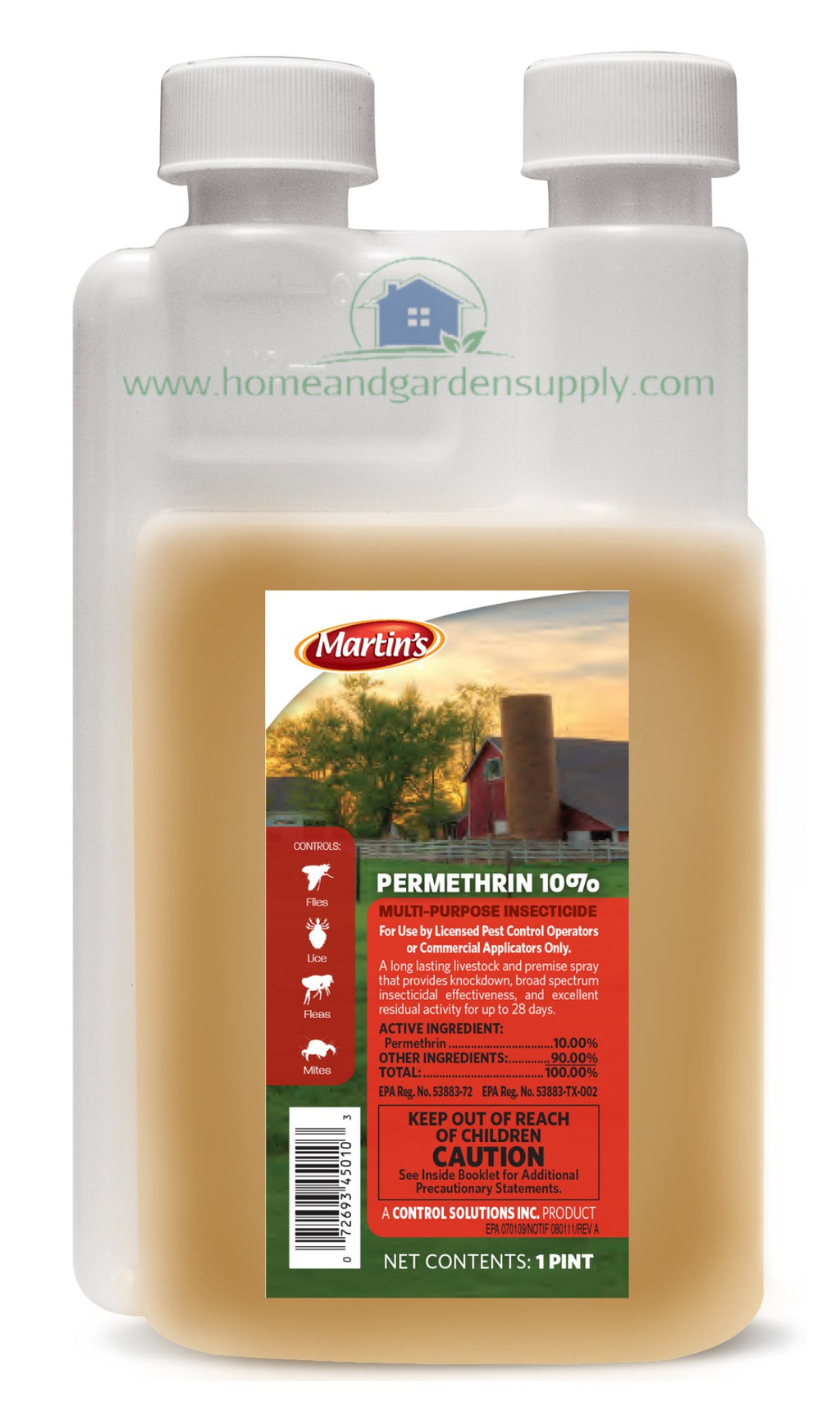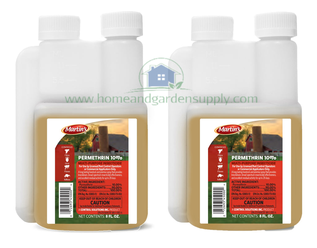 Keep your space free of pests with Martin's permethrin 10. It is made for both indoor and outdoor use. Easy to apply, this 16 oz multi-purpose insecticide is effective against flies, lice, fleas and mites. Plus, after application, it still works for up to 28 days. This broad spectrum insecticide is suitable for using in kennels, barns and other locations. Suitable for use in your home, a restaurant and other kinds of facilities