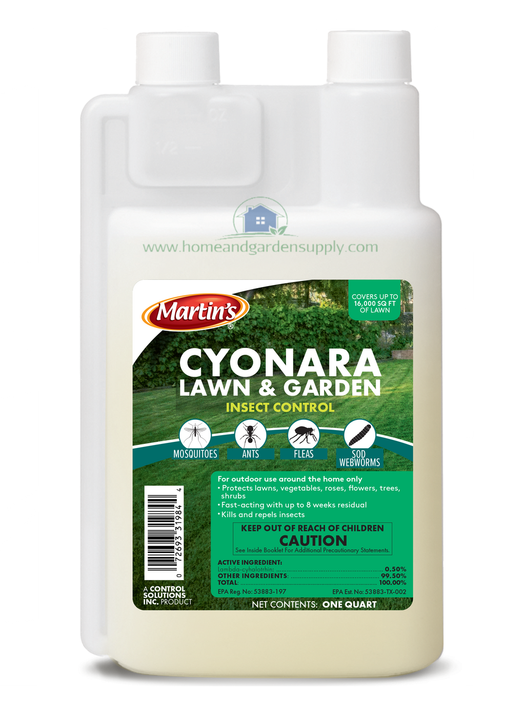 Cyonara Lawn & Garden is a broad spectrum 0.5% Lambda-Cyhalothrin product that controls a wide variety of insects. Cyonara Lawn & Garden kills 130 plus pests on contact with low odor, such as; spider mites, fleas, aphids, fire ants, chinch bugs & more.