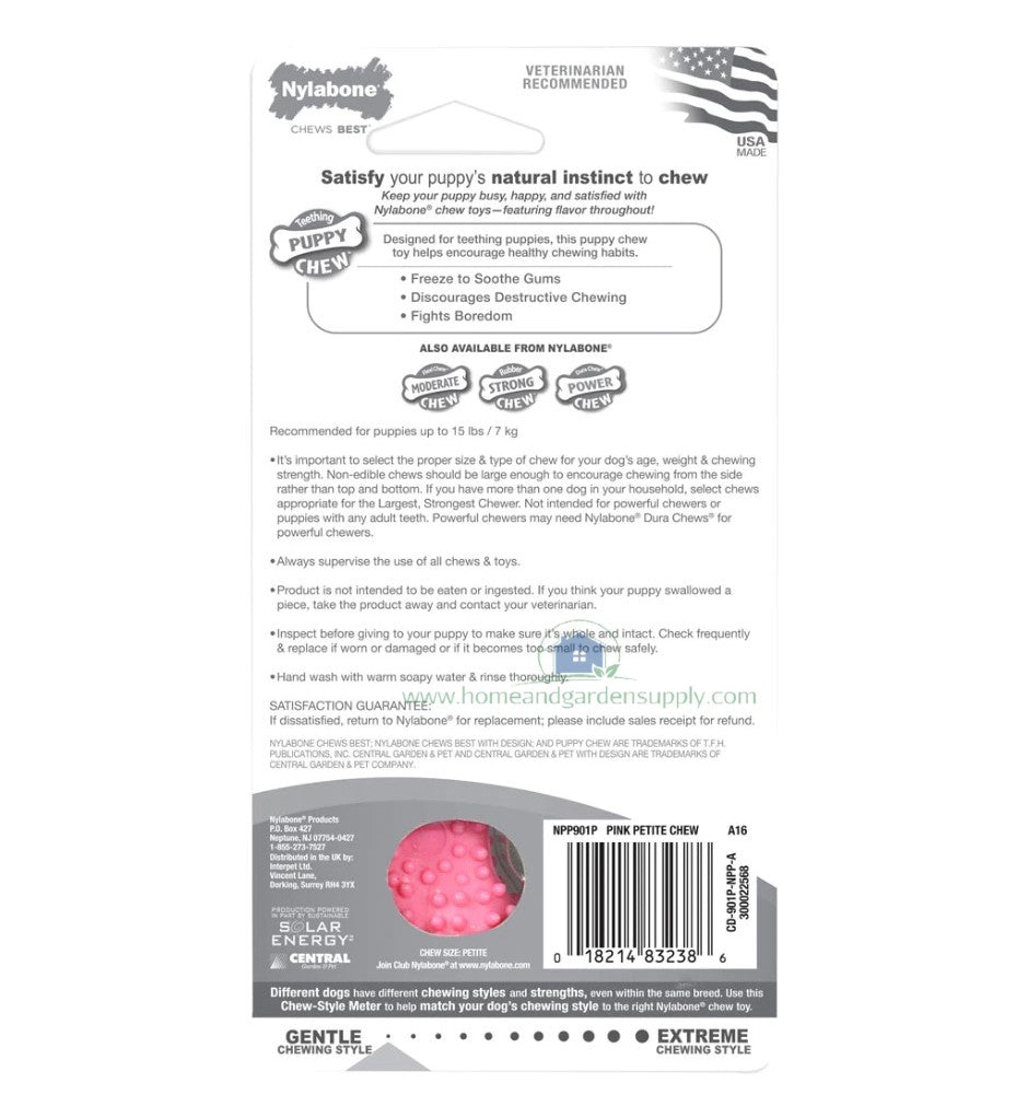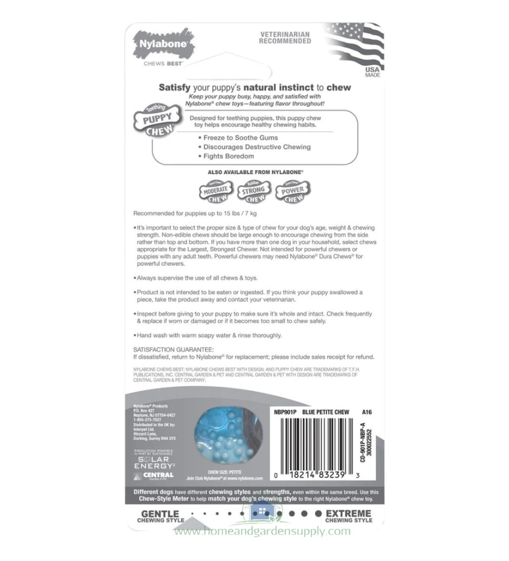 | Product Material: | Durable Nylabone Material which are made in the USA, tested in the USA and is approved by the FDA for animals. |